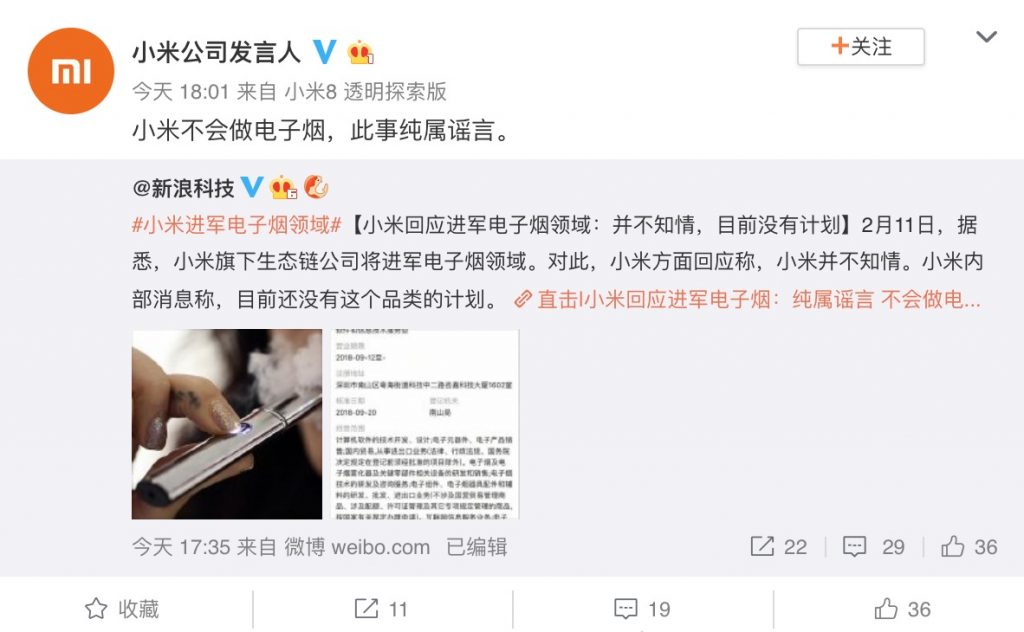报导,劲嘉股份发布出资者联系活动记载表显现,公司相关负责人表明:“公司将新式烟草作为大健康工业的重要切入口,加大出资力度,公司已与小米公司旗下生态链企业北京米物科技有限公司设立了合资公司因味科技,因味科技已建立专门团队规划研制电子烟、加热不焚烧用具等新式烟草制品,估计在 2019 年上半年推出电子烟产品”。电子烟范畴的创业在近期开端被外界重视,锤子科技前高管朱萧木在离职后创办了电子烟品牌,罗永浩还在快如科技 1 月 15 日举行的发布会上对该品牌进行了简略的介绍。