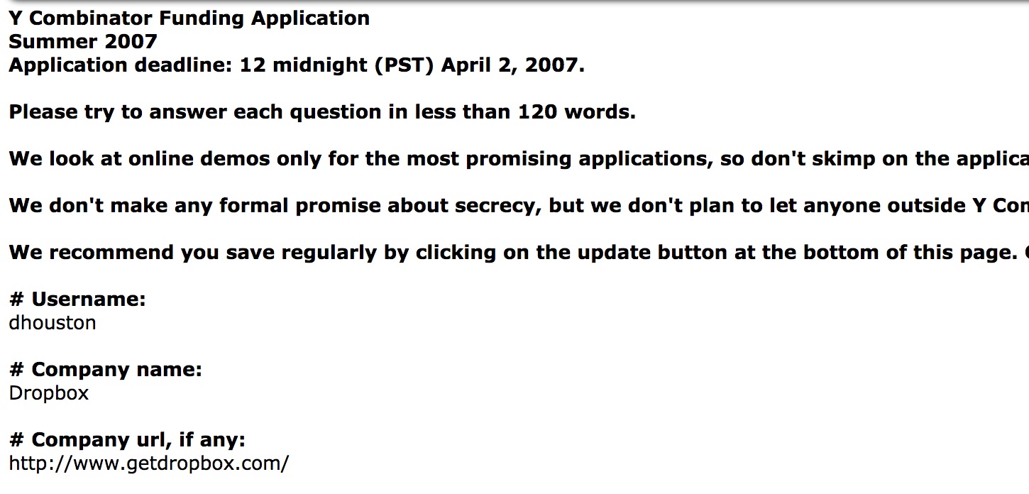 虽然 CrunchBase 的数据显现,Dropbox 的发动时刻是 2007 年 6 月,但这家创业公司初次被 TechCrunch 重视是在 8 月份的 YC Demo Day 上。咱们其时是