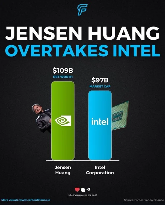 股价的上涨也为黄仁勋带来了巨额财富,他直接持有超越 7500 万股英伟达股票,以及经过各种信任和合作伙伴关系持有别的 7.86 亿股。虽然本年他已经过出售 600 万股股票套现超越 7 亿美元,但这相对于他持有的英伟达股票估值总额来说仅仅沧海一粟。黄仁勋的财富增加使他跃升至福布斯实时富豪榜第 11 位,间隔进入前十仅差 200 亿美元。